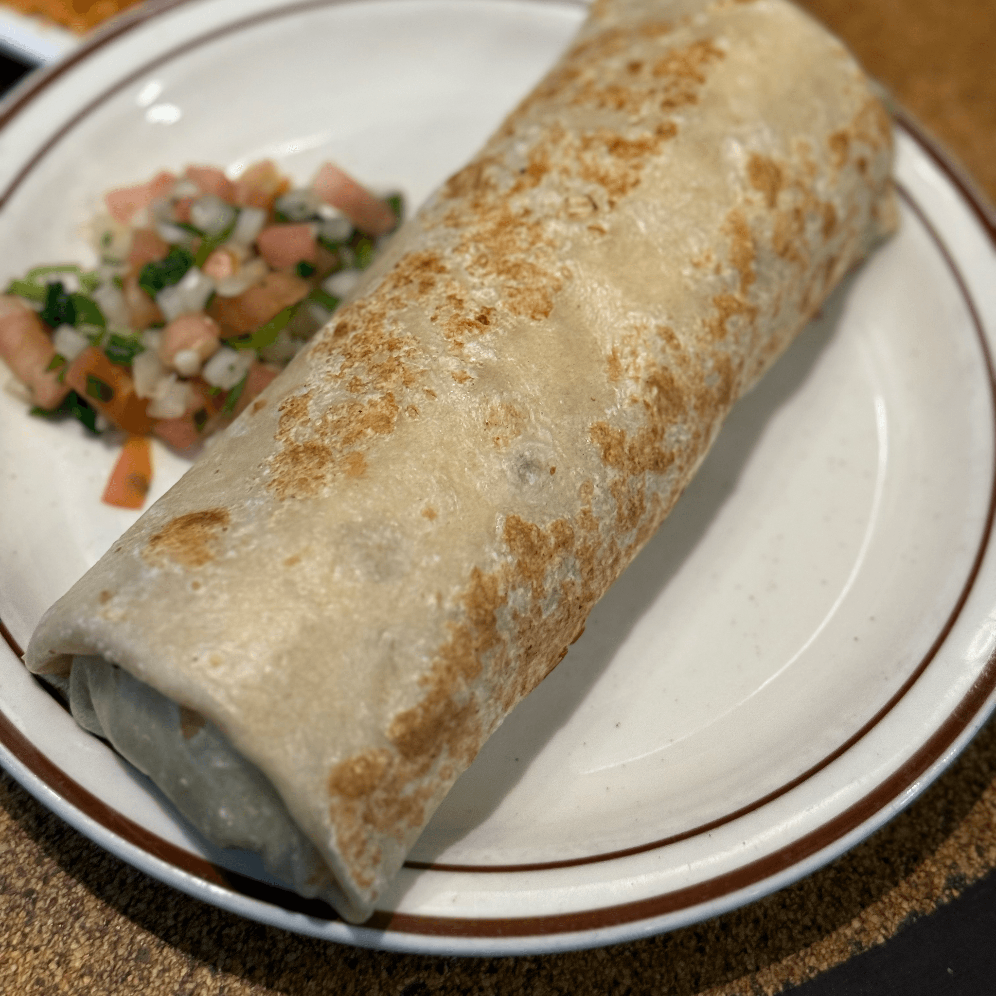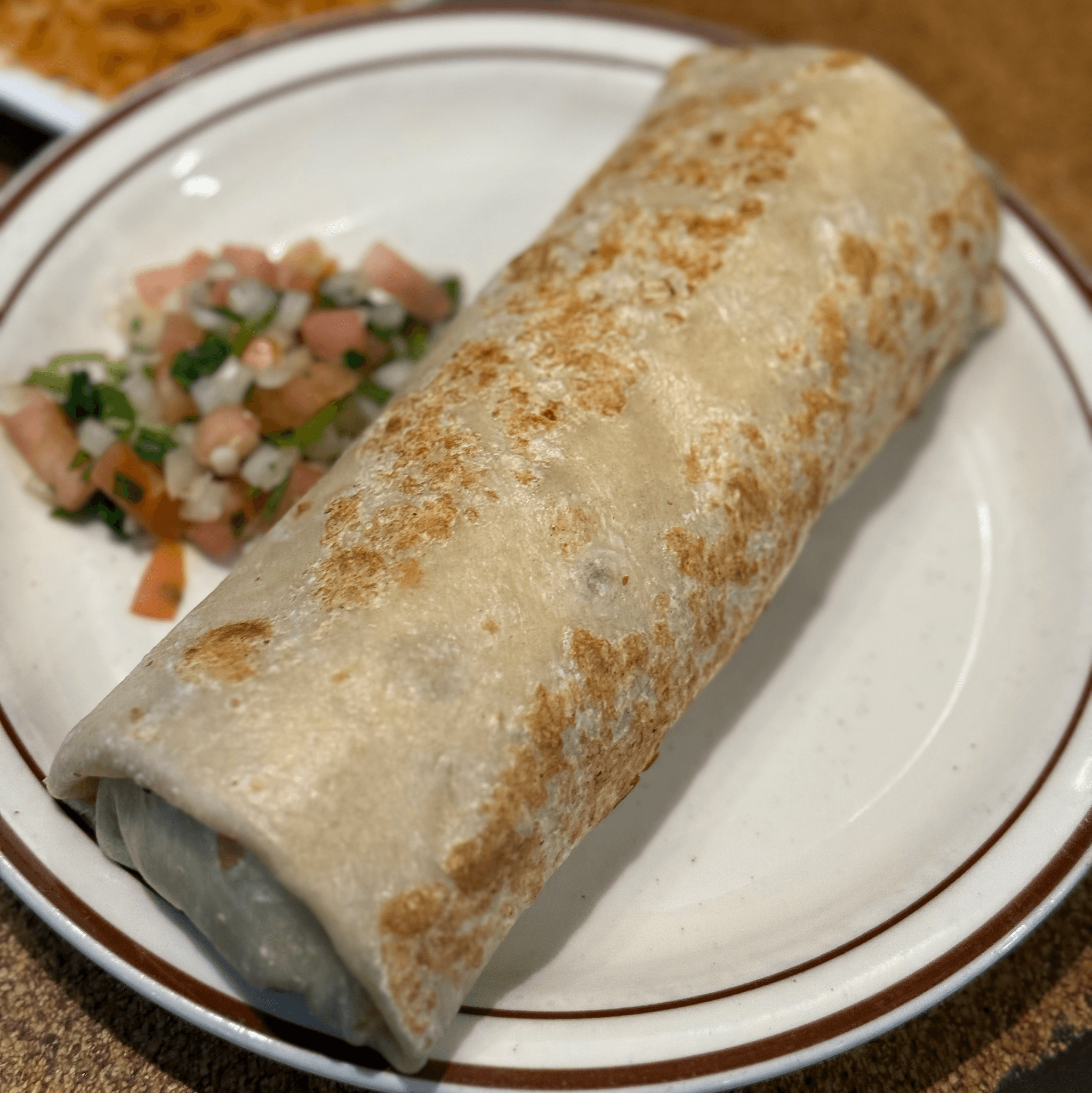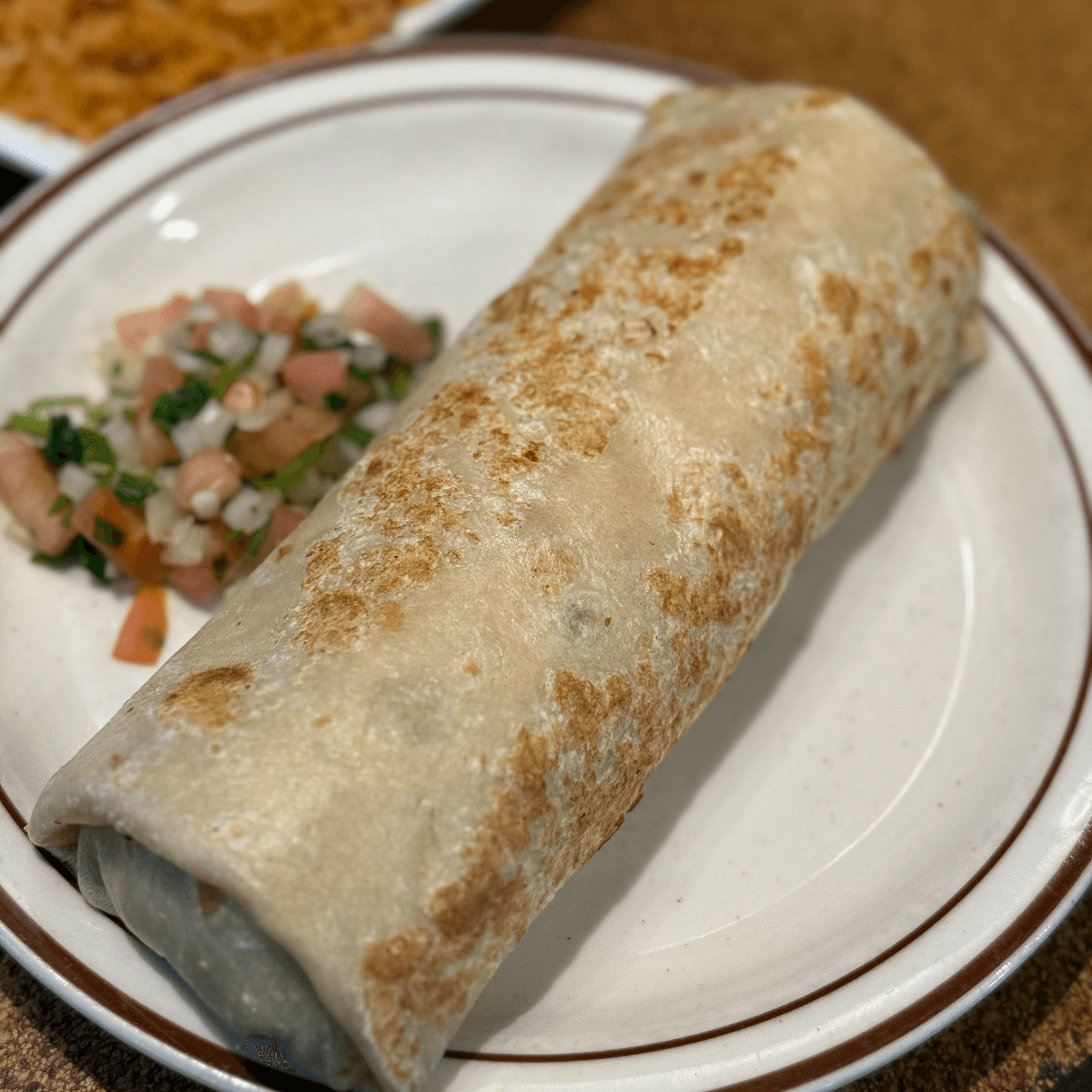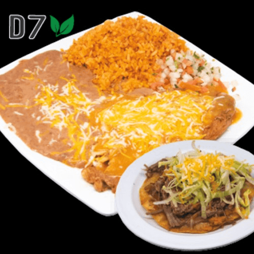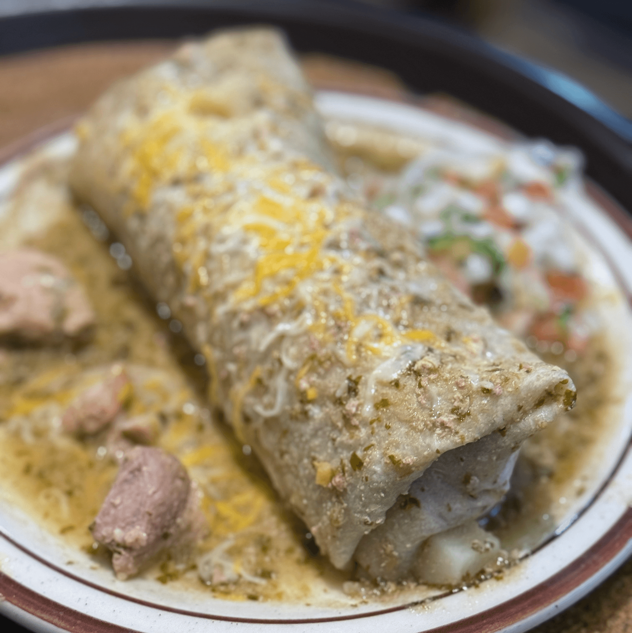 Honoring our name this plate is grande! Grande in taste with our homemade 14 inch. Flour tortilla, stuffed with beans, Mexican rice, shredded beef and smothered with our famous enchilada sauce