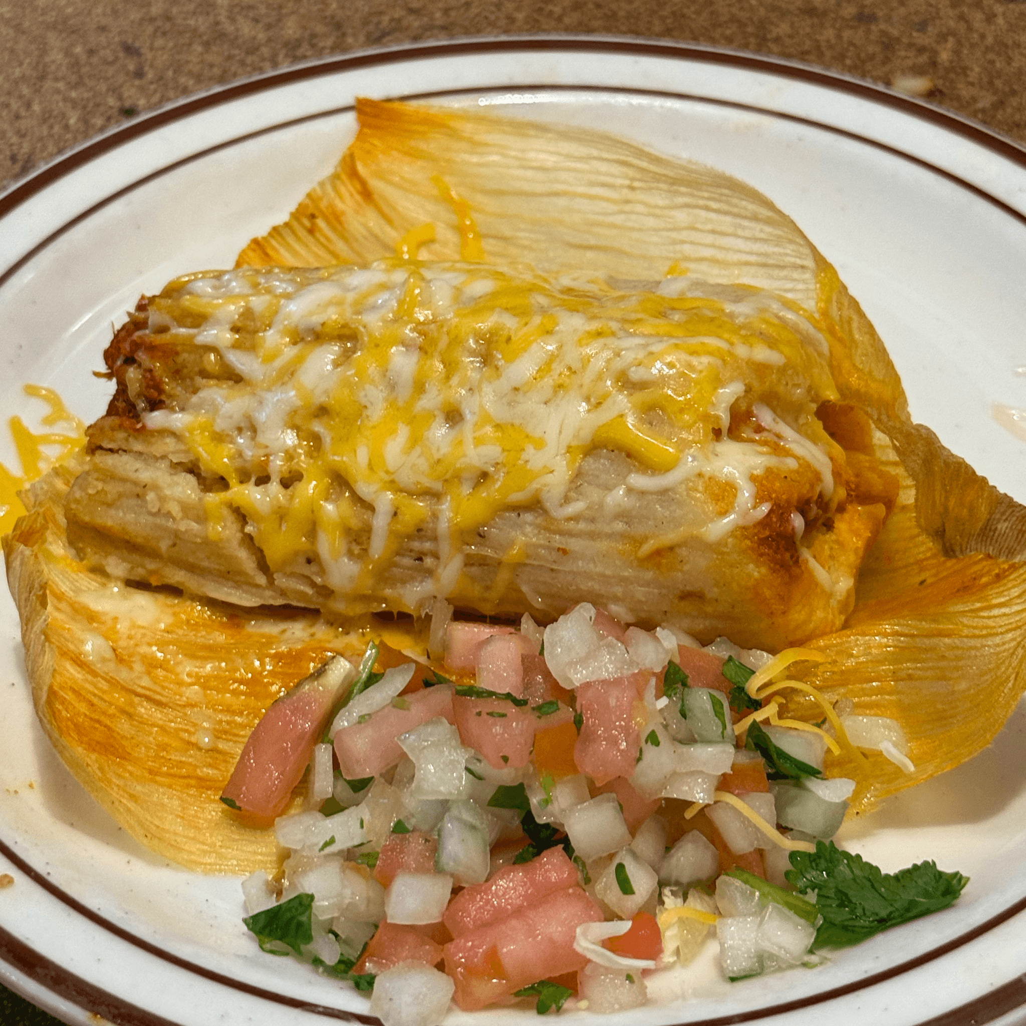 Our handmade beef tamale is crafted with soft, steamed masa wrapped around tender shredded beef. Every bite is warm, comforting, and authentically satisfying.