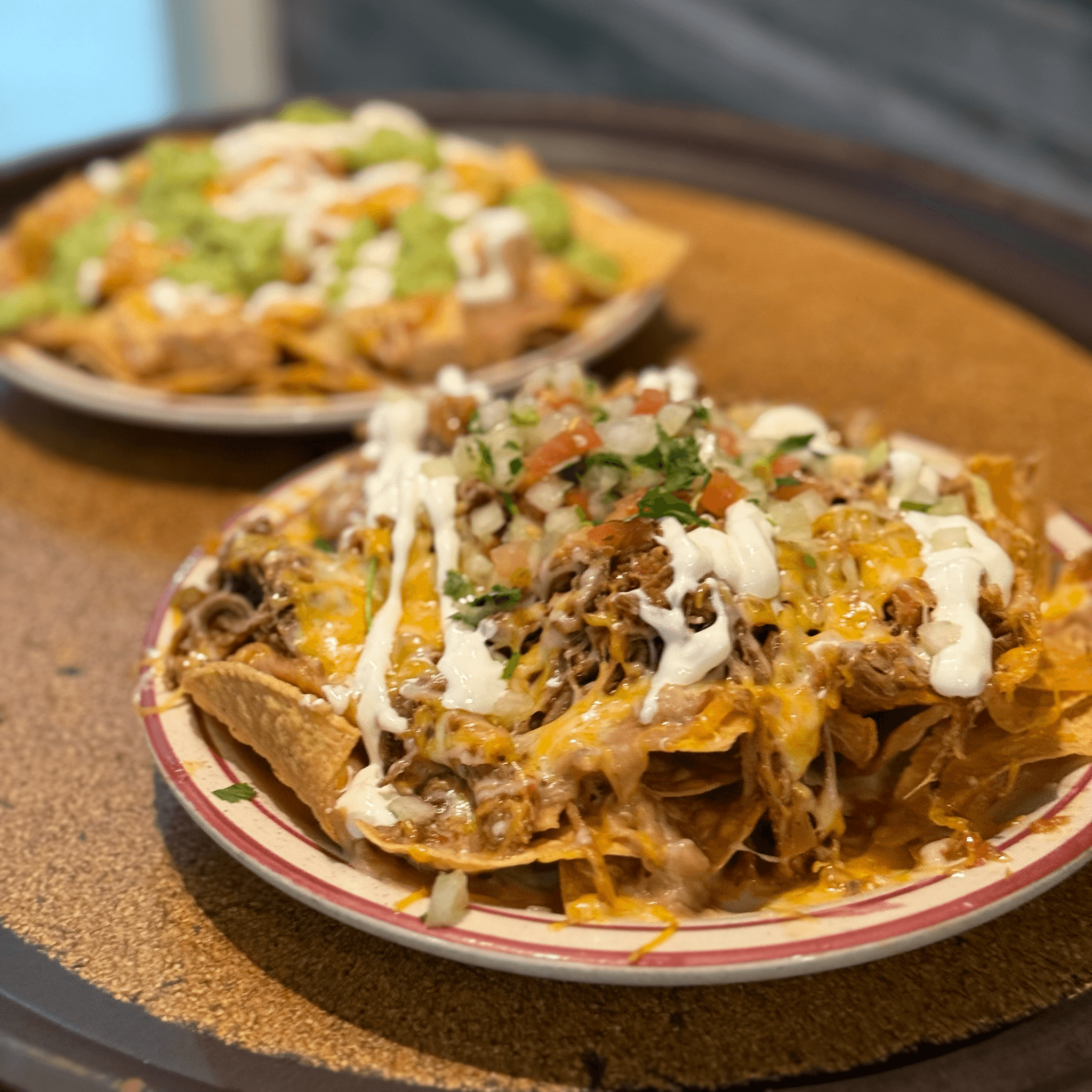 The plate that puts your fingers to work. Great starter for groups! Comes with shredded Monterey Jack cheese, guacamole, sour cream, beans and pico de gallo (onion, tomatoes & cilantro)